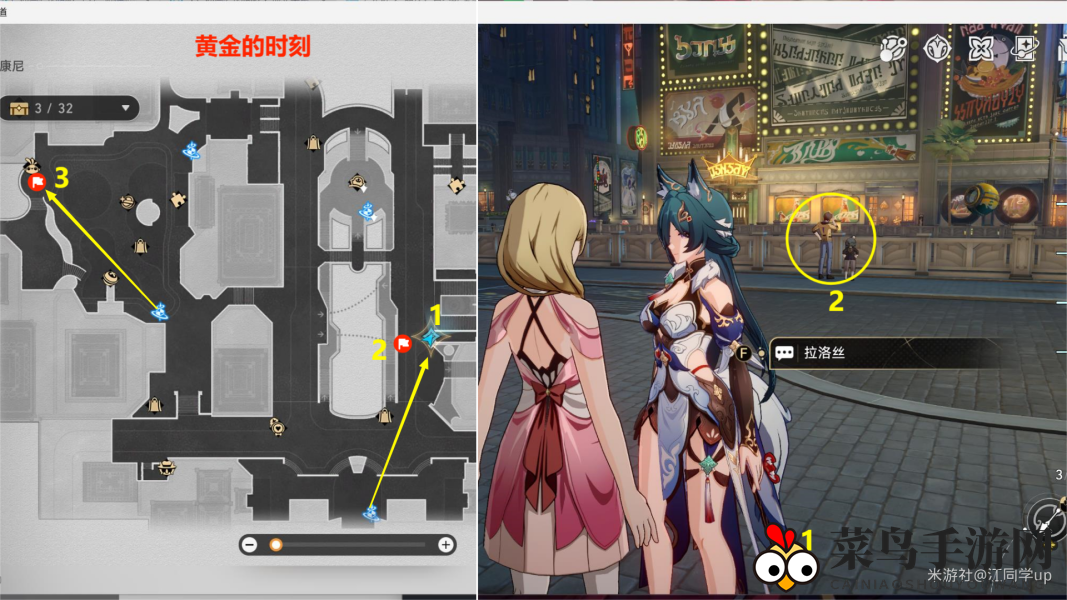 (3) 按任务指引,至图示3点完成剧情,回1点与【拉洛丝】交谈,任务完成,成就解锁一半