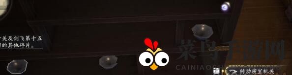 (1)来到长庆楼,攀登至二楼,注意观察柜子上那三只碗,选择缺口方向正确的小屋,仔细阅读字条,并按碗缺口指示旋转,长庆楼密室的大门便会缓缓开启。