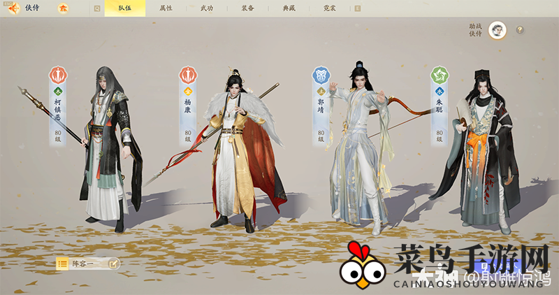 一个肉盾、一个治疗和两个输出的侠士阵容非常实用。若你与我侠士配置相同,可直接参考我的组合,朱聪的技能能为两个侠士提供强大攻击力,阵容相当强势。