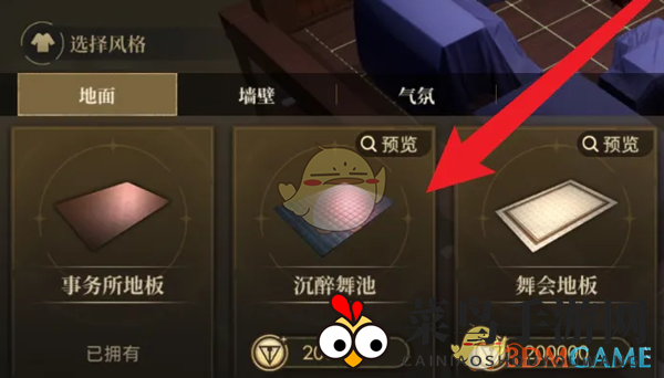 3、跟随箭头指示,切换地面风格,彰显你的独特品味;