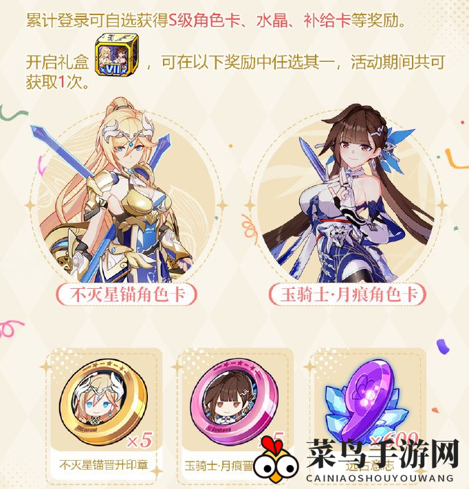 只需连续登录,即可轻松解锁S级角色、水晶、补给卡等珍稀奖励。