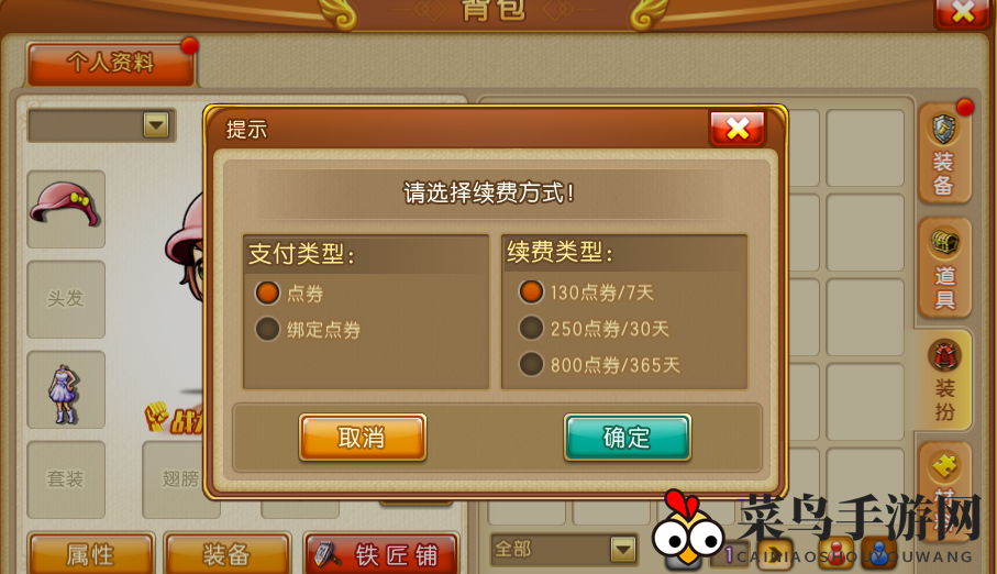 在商城购买的物品,续费既可用点券,也可用完成任务获得的绑定点券。