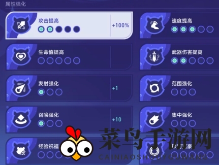2、特性强化,先升级初始武器等级,降低关卡挑战度。