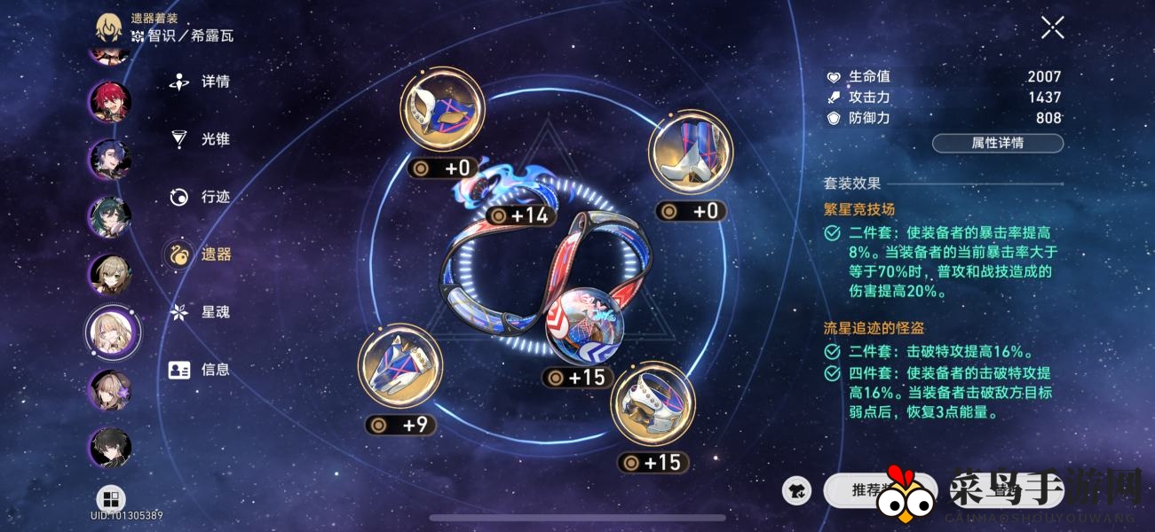 5.遗器搭配:外圈流星套+32击破,内圈击破绳子,我推荐使用14级