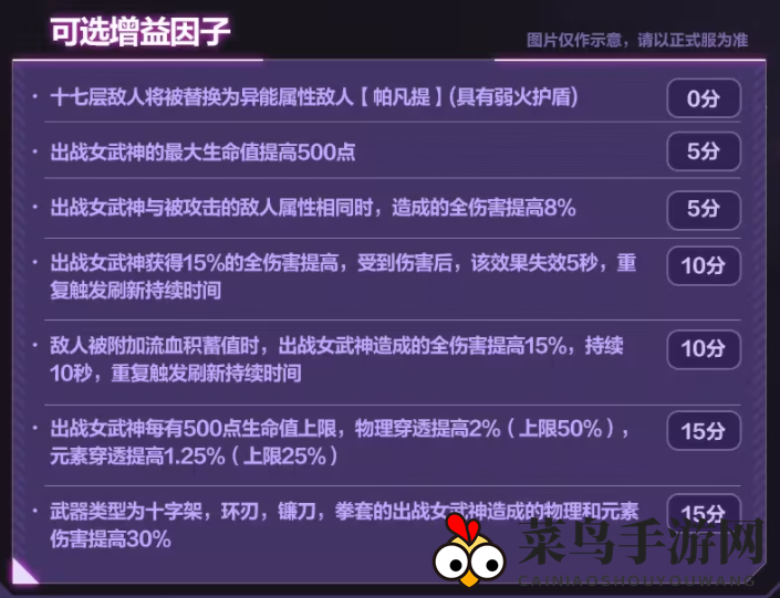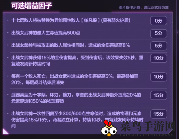 使用十字架、环刃、镰刀、拳套武器类型的女武神,额外提升20%元素穿透和50%物理穿透