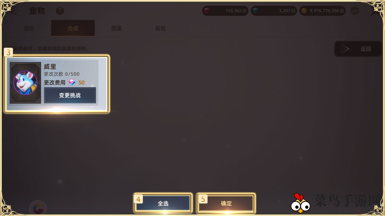 使用4只同品质宠物进行合成,有望获得更高级别的宠物。