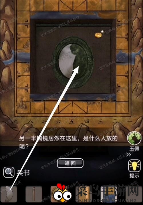14、中间的茧打开后会出现棋盘,这是一个将军棋的小游戏,通过后会出现半面铜镜,将之前的镜子放上去。