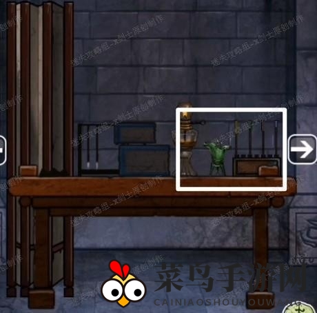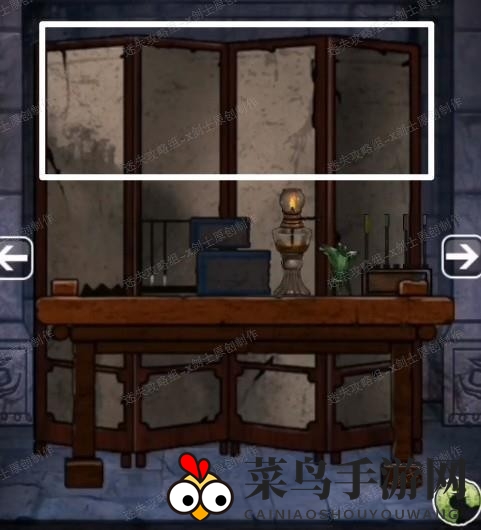 6、在下方点击拿取齿轮和酒壶,然后向右移动到一个场景,点击屏风。