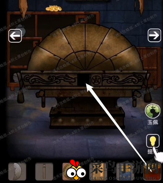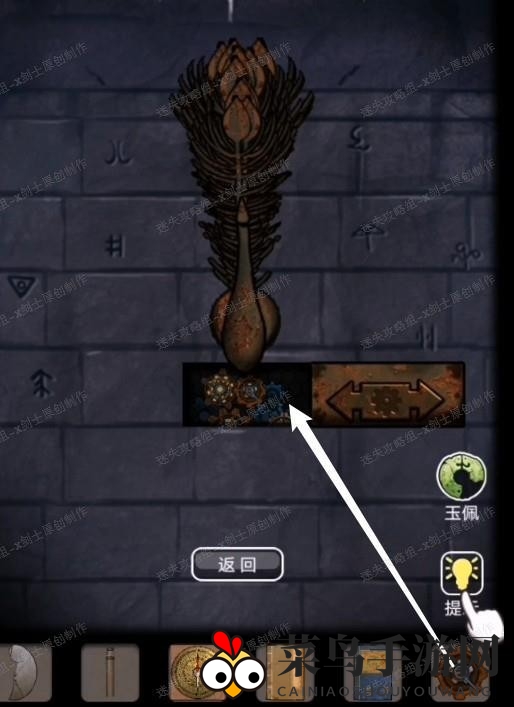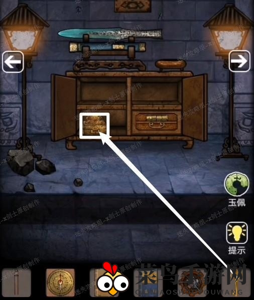3、点击宝剑上方的孔雀,再点击孔雀下方的暗格,机关启动,发现缺少零件。