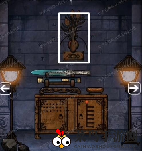 20、回到放置宝剑下面的箱子,使用刚刚得到的密码,打开有密码锁的箱子,在竹简里得到棋盘后面的箱子密码。