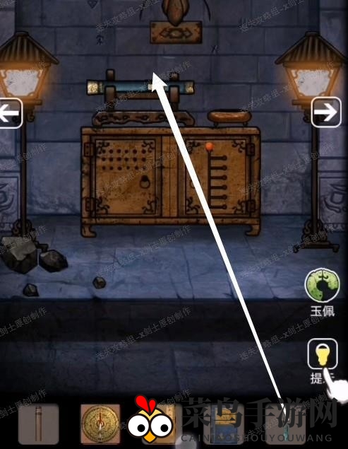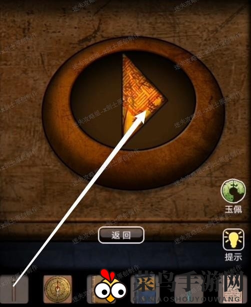 18、来到棋盘前面,点击后面墙上的黑色罗盘,将木箱子得到的密码提示输入进去。