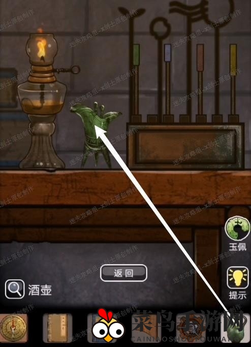 8、将柜子里的玉酒倒入玉杯中,获取提示信息。