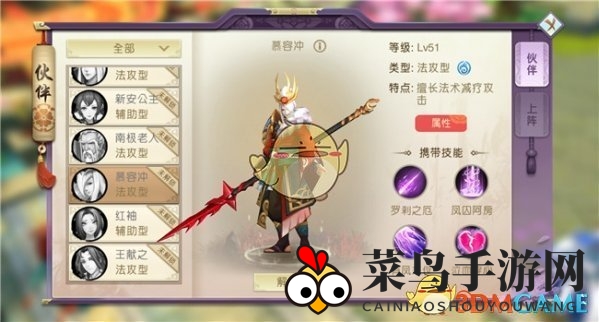 慕容冲,这位法攻型伙伴以其独特的法术减疗攻击能力而闻名。