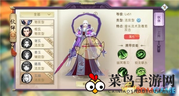 玄幽,这位法攻型伙伴以其精湛的法术和毒素攻击能力而闻名。