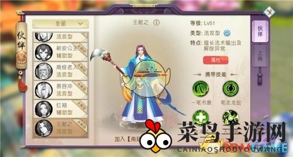 王献之,这位法攻型伙伴凭借其卓越的法术输出和强大的异常状态解除能力,成为了战场上的佼佼者。