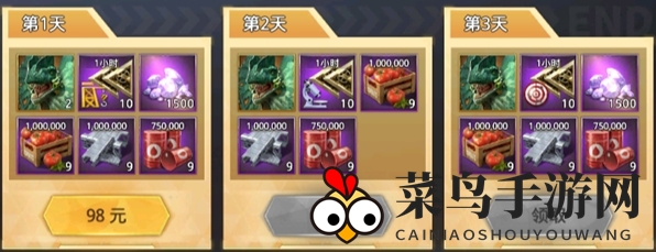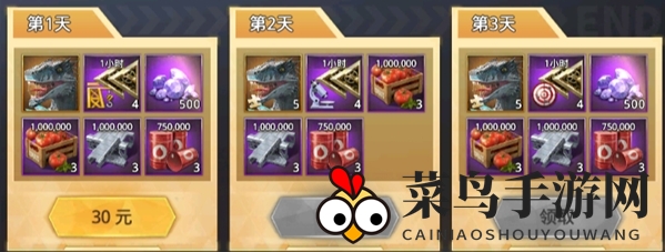 3、第三天可领取5张迅猛龙卡、4个1小时训练加速、500钻石、3个1000000番茄、3个1000000钢铁以及3个750000石油。