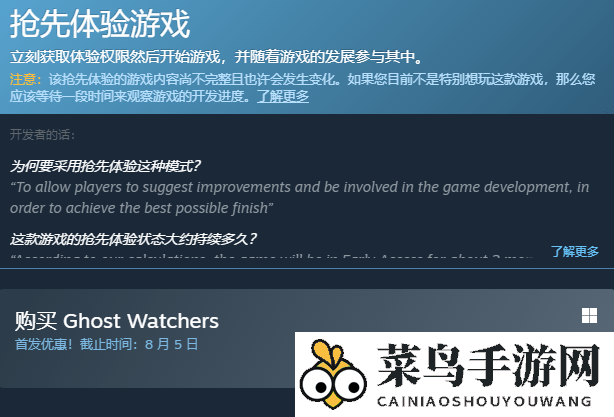 以上就是《幽灵观察者Ghost Watchers》在Steam上的价格信息,希望对您的购买决策提供参考。想了解更多游戏资讯、攻略和教程,请关注多特手游,多特小编将为您带来更多精彩内容。
