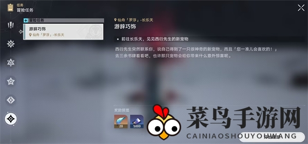 1、踏上征途,前往长乐天,与西衍先生会面,接取“游辞巧饰”任务。