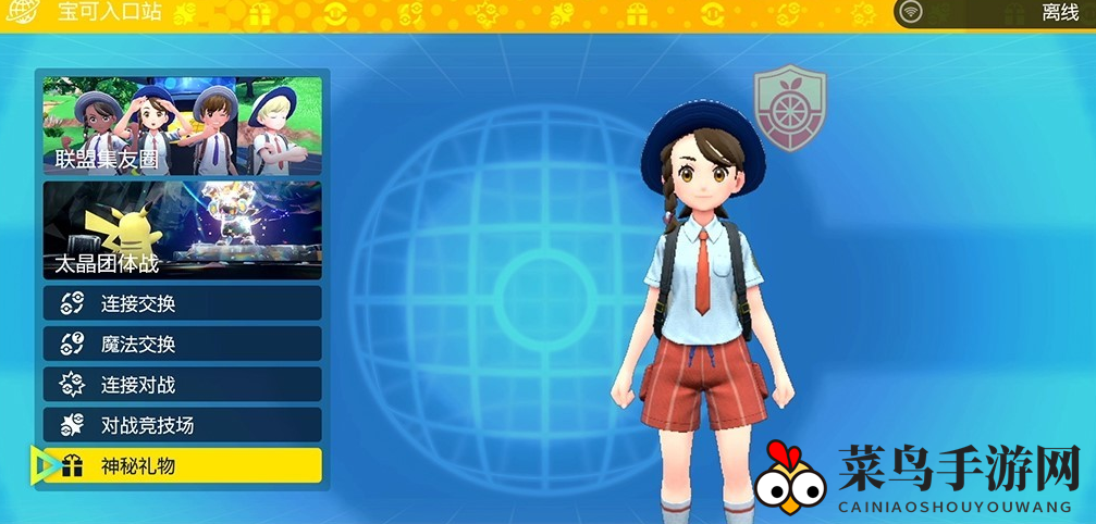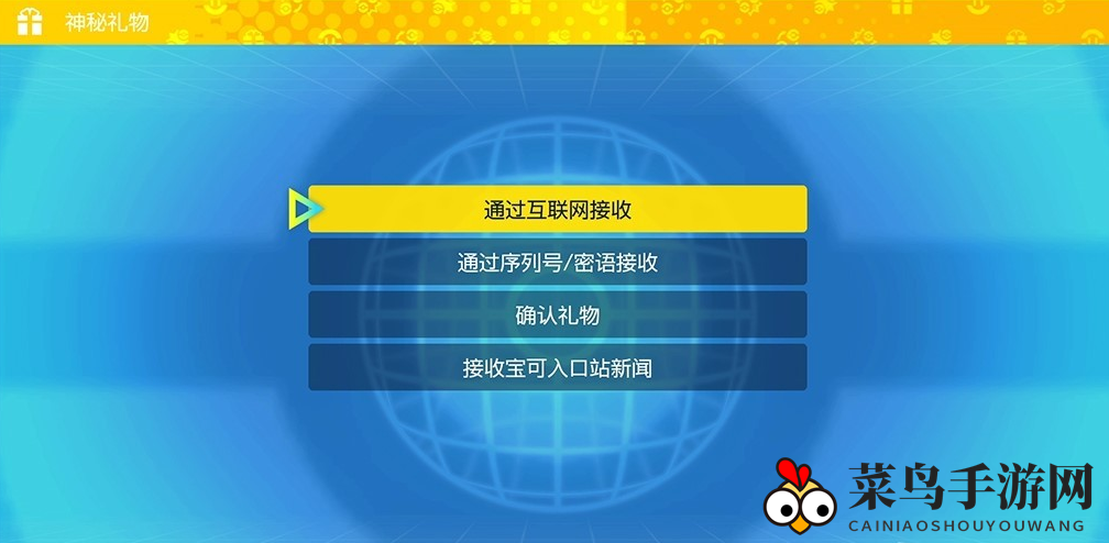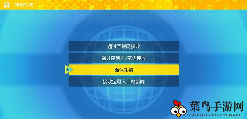 按下X键打开菜单,选择【宝可入口站】,再选择【神秘礼物】。