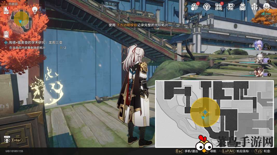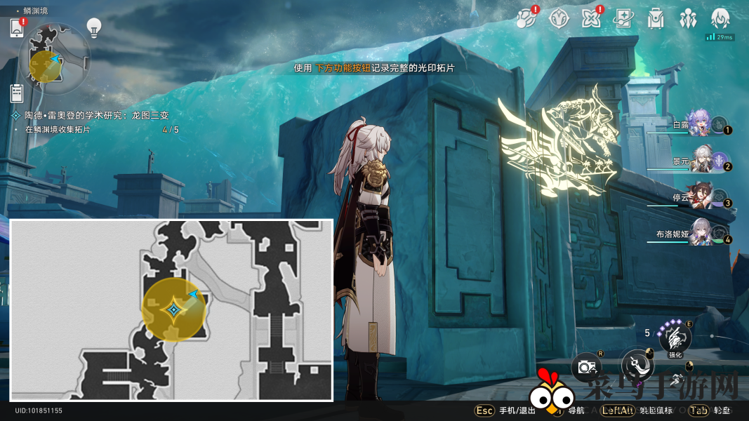 6. 返回交付任务,之后我们去鳞渊境收集拓片(我们顺时针收集就行了)