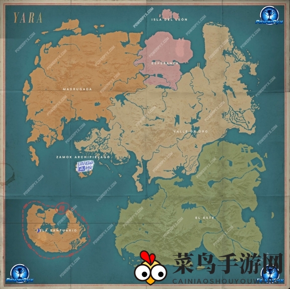 地图划分为6个区域:桑图里奥岛、自由总部、马德鲁加达、瓦莱德奥罗、埃斯特、埃斯佩兰萨。