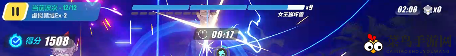 5)最后一层女王崩坏兽与水母类似,但剩余时间最好在30秒以上,以免挑战失败,尽管只要女王半血即可达到1500分。