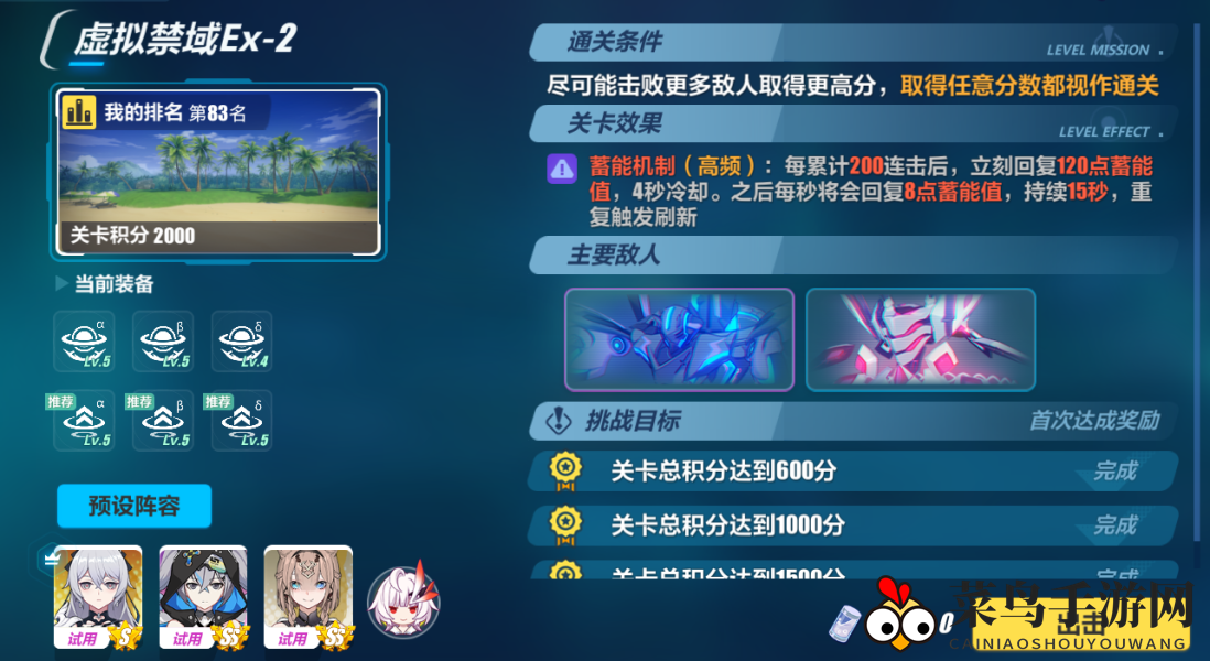 《崩坏3》虚拟禁域EX2全试用1500分3星攻略