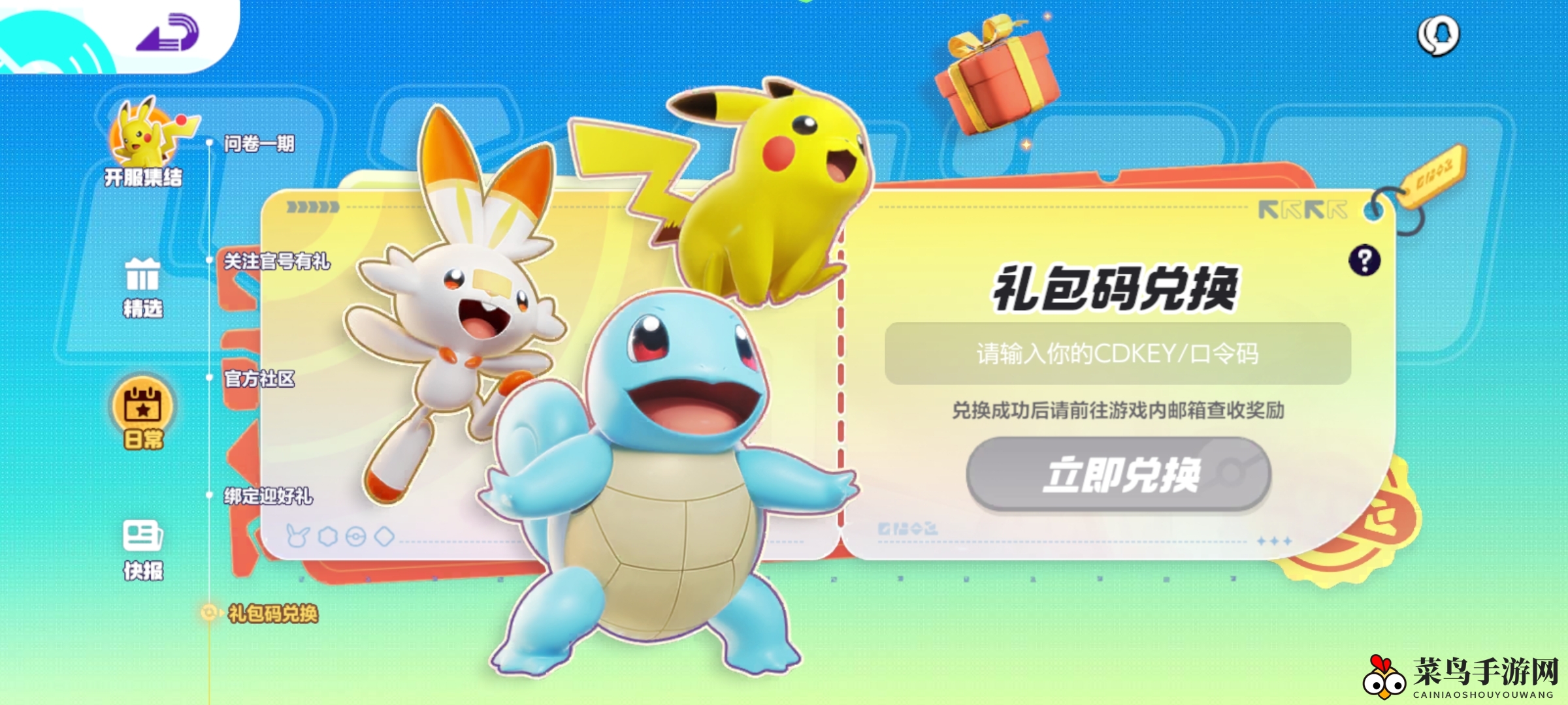 想要在《宝可梦大集结》中迅速壮大实力?别急,兑换码就是你的秘密武器!这款备受欢迎的多人在线对战游戏,有了兑换码,资源获取变得轻而易举。今天,手游网将为你揭晓《宝可梦大集结》兑换码的获取途径,助你轻松解锁福利大礼包!