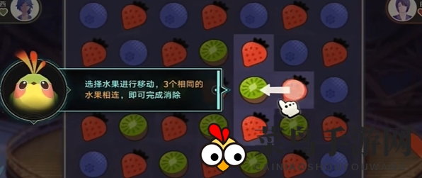 进入关卡后,选择水果进行移动,只需3个相同的水果排成一线,即可完成消除。