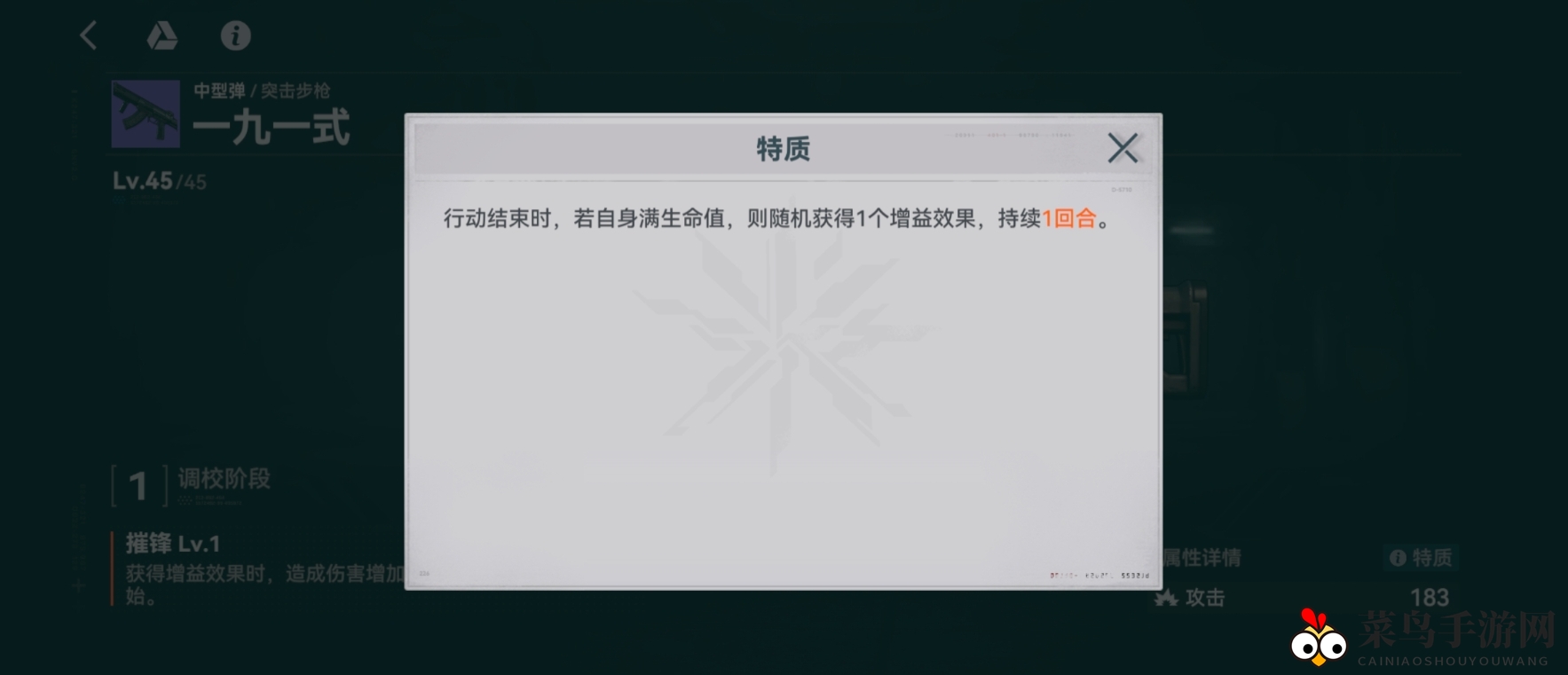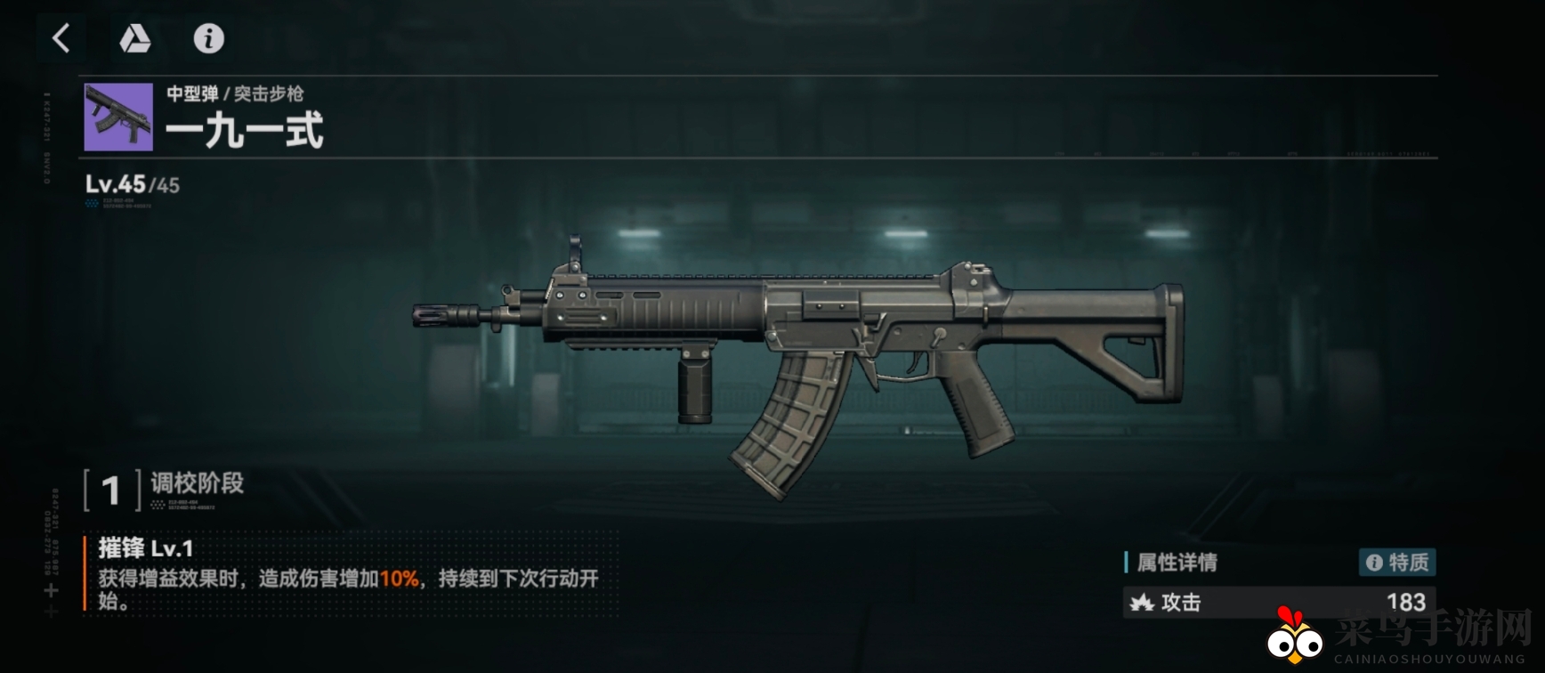 攻击力:183(属性为调校阶段1,下同)