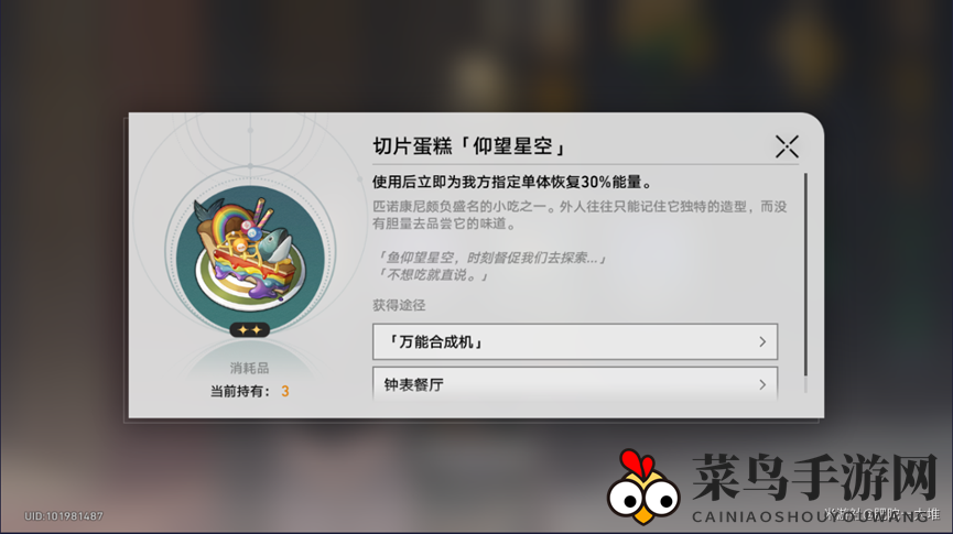 功效:食用后,指定角色能量迅速恢复30%。