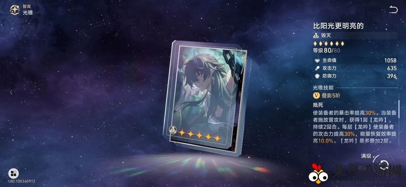 龙丹专武【比阳光更明亮的】:暴击率易溢出,镜流角色难以发挥其攻击和充能优势。