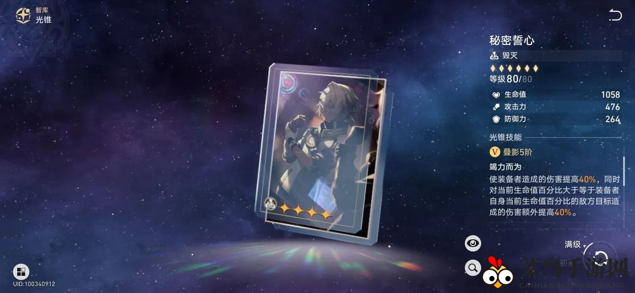 【秘密誓心】尚可使用,稳定享受40%增伤,后40%效果需实战检验,80%增伤覆盖率不及刃。