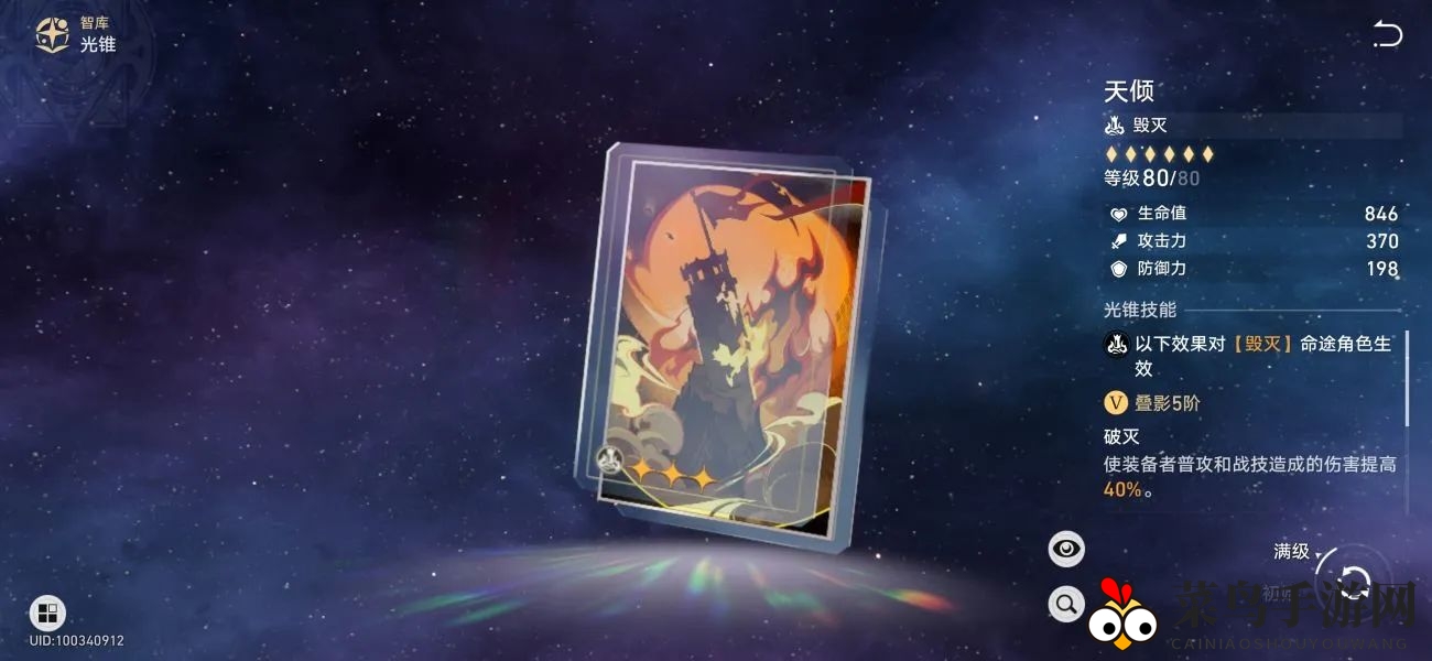 专武【此身为剑】在毁灭光锥中独树一帜,其增伤与减防效果正是镜流角色所需的。