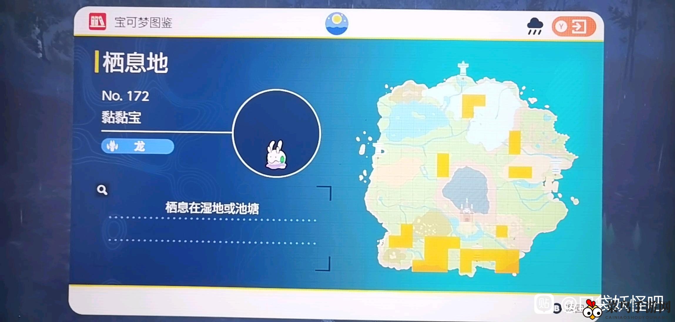 黄色标记区域揭示了捕捉黏黏宝的精确位置,详情请参考下图。