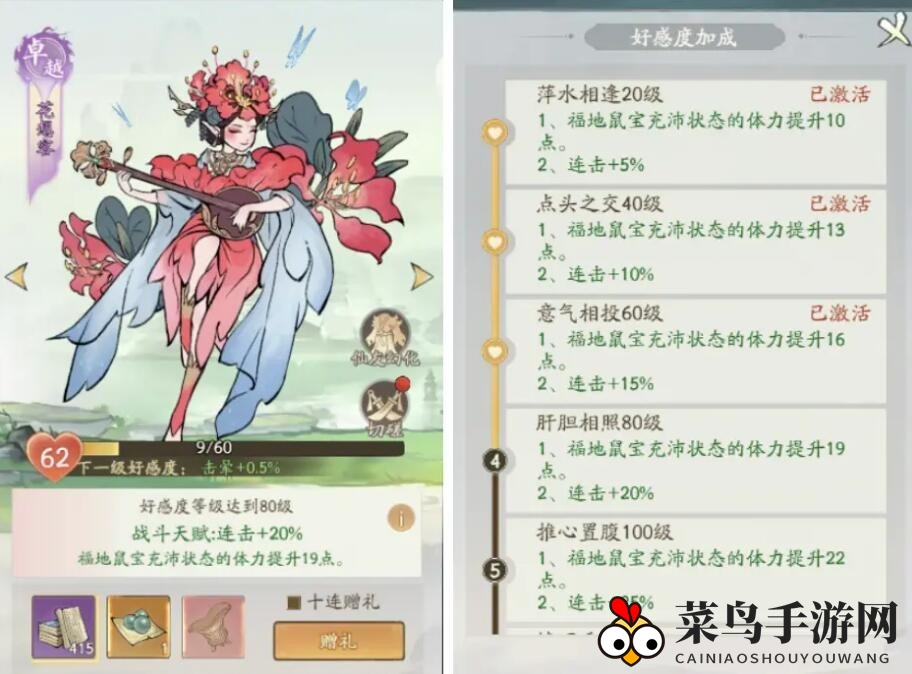 1、务必尽早将花想容(仙友)提升至20级,此时约拥有60点体力(仅供参考),充沛体力约20点,正常体力约10点,虚弱状态无需考虑。