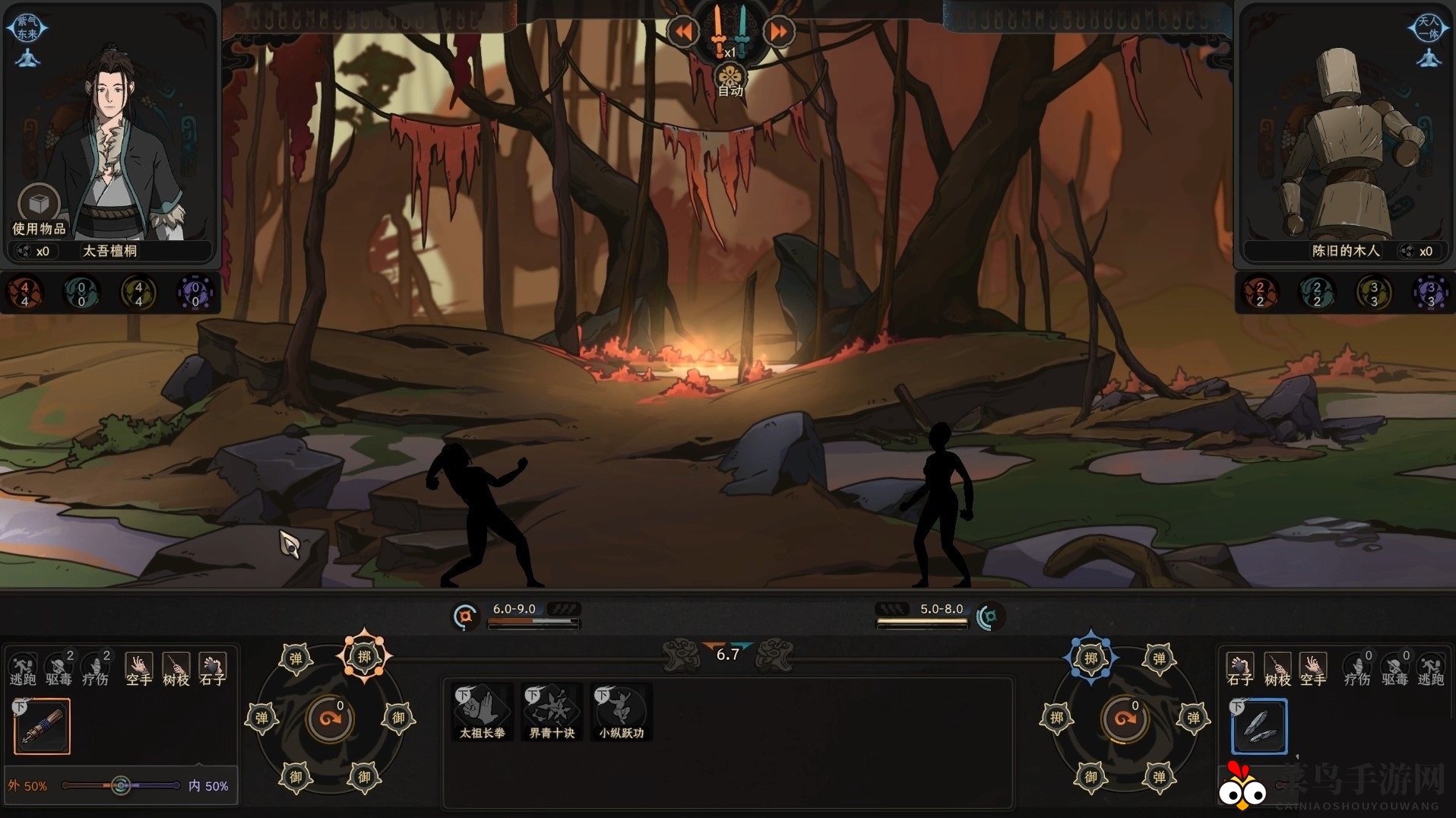 战斗开始,目标是击败木人。