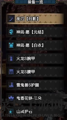新手毕业套装推荐:迅龙太刀、神凪愿元结和白衣,上位火龙腕甲和腰甲,雪兔首护腿,可发动攻击4、挑战者4、利刃和纳刀术。