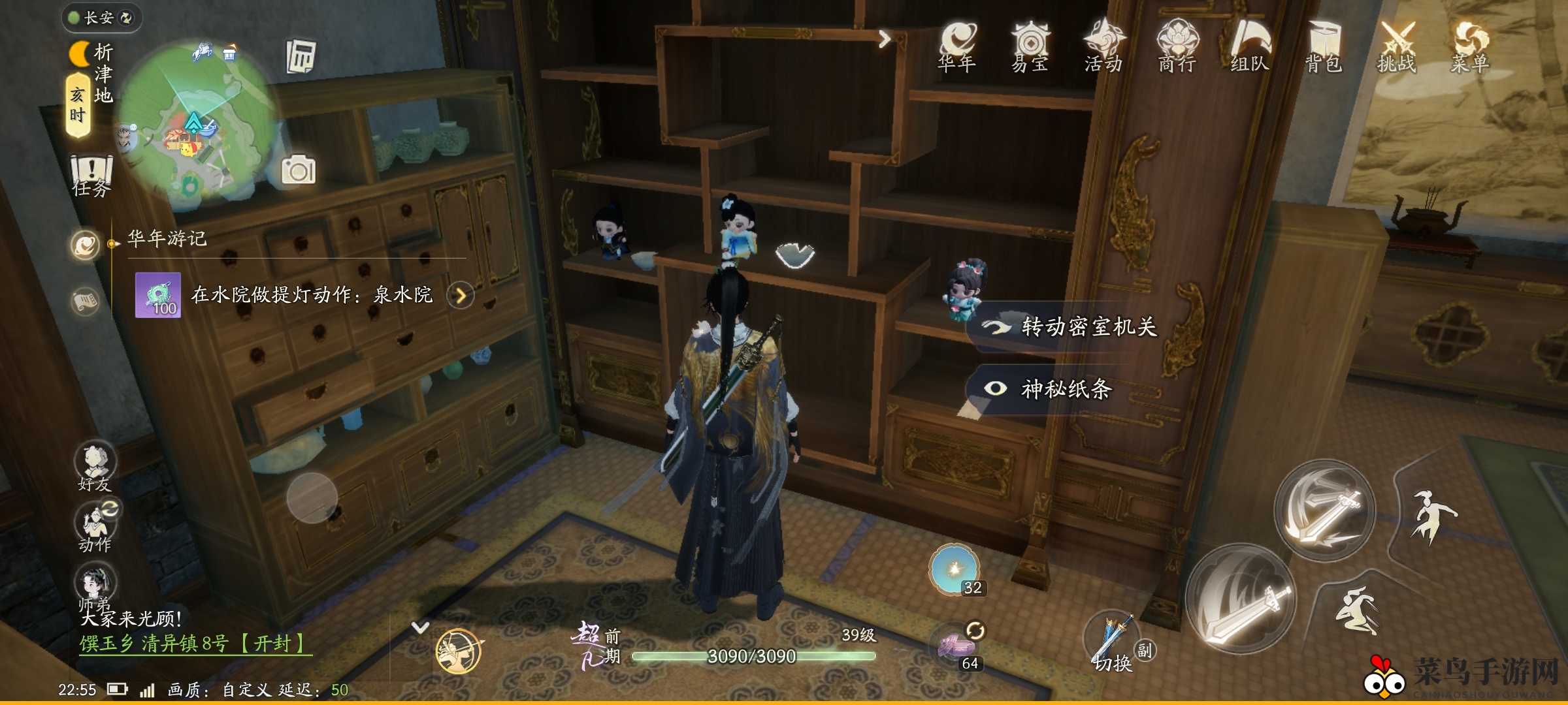 2、按照图2、3所示,将玉佩放置到指定位置,即可获取到宝贵的昆仑气脉。
