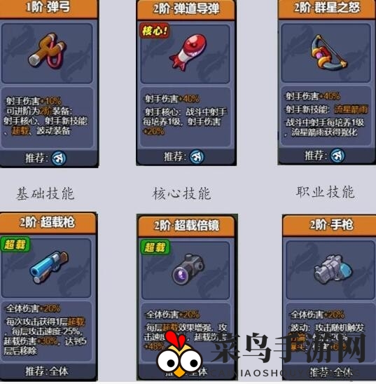 1、基础技能:初级弹弓,为射手角色带来10%的伤害加成。