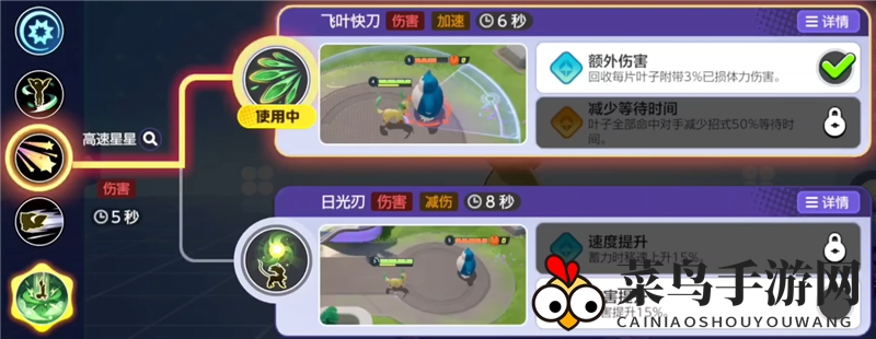 飞叶快刀:叶伊布射出五片叶子攻击,全中同一目标可形成护盾,持续3秒。