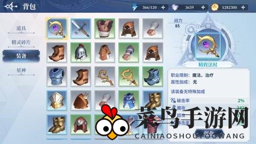 1、进入精灵界面,点击装备选项,挑选品质为蓝色或更高的装备,点击升级按钮。亦或是在背包内直接选择装备进行升级。
