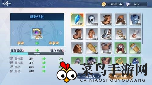 2、选择用于升级的材料,强化石或其他多余的装备或低品质装备均可作为材料,用于升级目标装备。