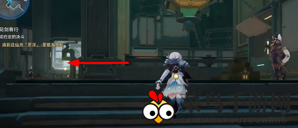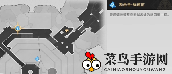 1、开启游戏,启用地图指引,直指勘录舍·栈道(详见图解)