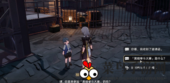3. 注意到木箱子上有个亮点,点击【调查】,即可获得“黑暗拳斗大赛”的入场券;