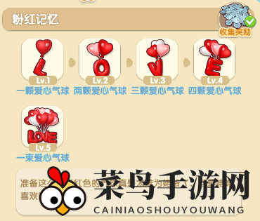 *合成至Lv.5 一束爱心气球,点击1次,点完消失。