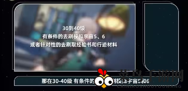 2.1.1模拟宇宙五六是账号等级40级的掉落水平(指掉5星遗器)但在账号30级就开放(需打通前几个,怪比人高5-10级,不一定稳过)