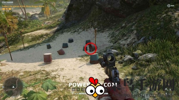 海滩上方的岩石上,地图边缘处,等你来解锁。