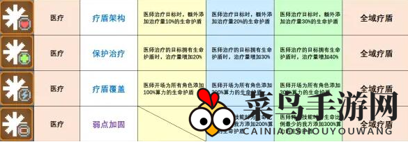 疗盾结构解析:医师在治疗目标时,额外提升10%的治疗力,生成护盾。此护盾对治疗效果显著,特别适合血量低但属性强的战士角色。虽然抓位不高,但升级时仍应优先考虑。