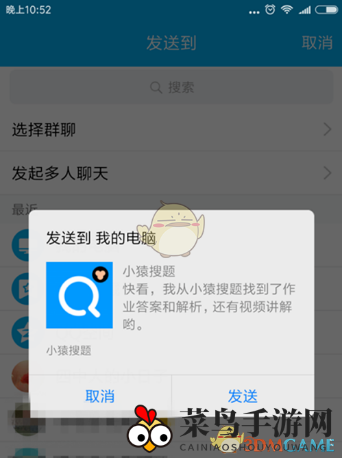 4、出现发送界面后,点击“发送至我的电脑”。